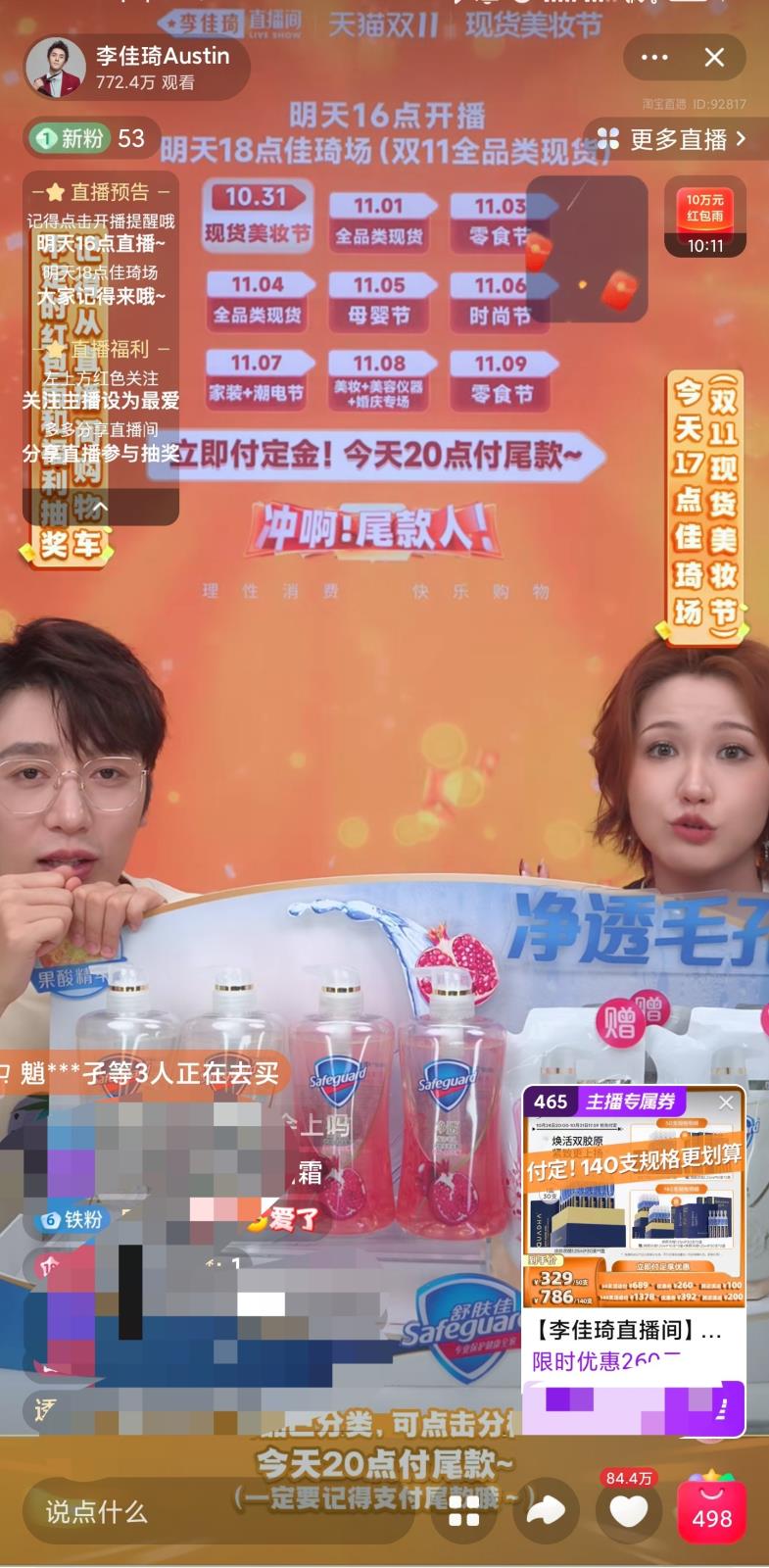 李佳琦直播間疑為沖雙11銷量未付先送